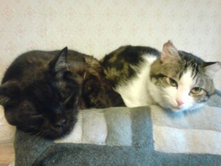 帰ったとたんにゃんこの腹で温めました